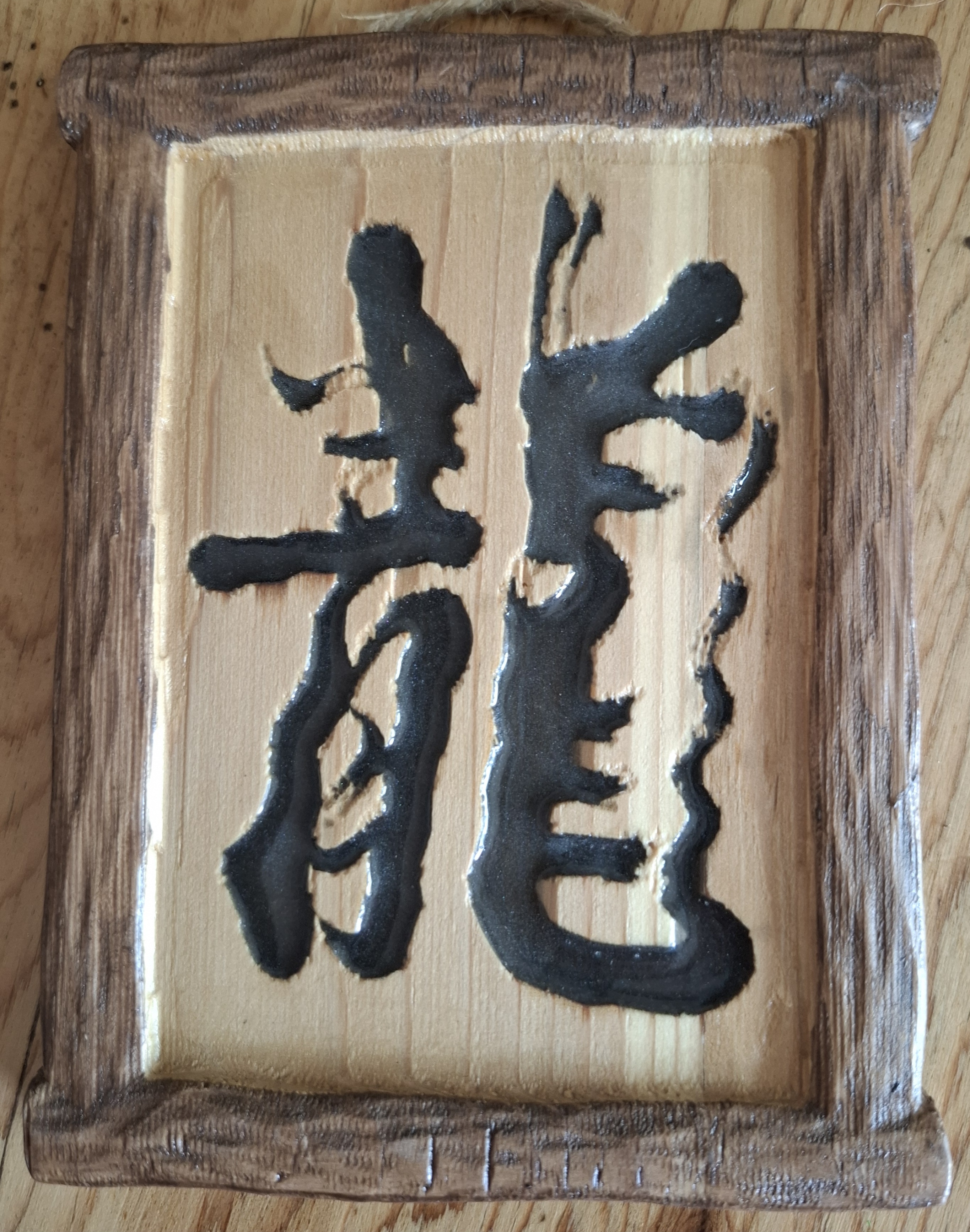 Chinese zodiac Dargon carved from recycled wood. Size 5.5 in X 4.25 in