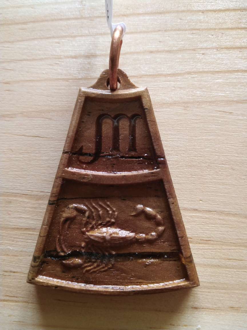 Scorpio zodiac pendant made from eucalyptus wood.
